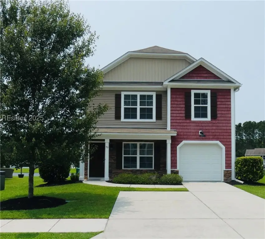 Ideally situated in Southern Oaks, this 3 bed., 2.5 bath home is located on a beautiful lagoon. Front porch opens into the great room, open to kitchen and dining area w/access to back patio overlooking the lagoon. Enjoy stunning sunsets sitting on the back patio. Half bath and laundry complete the downstairs. All bedrooms upstairs, w/primary having Cathedral ceiling, walk-in closet and dual vanities in tiled bathroom. Inside freshly painted, even the ceilings!! Close to New Riverside Barn Park, and NR Village w/shopping, restaurants and more to come! OSCREA.