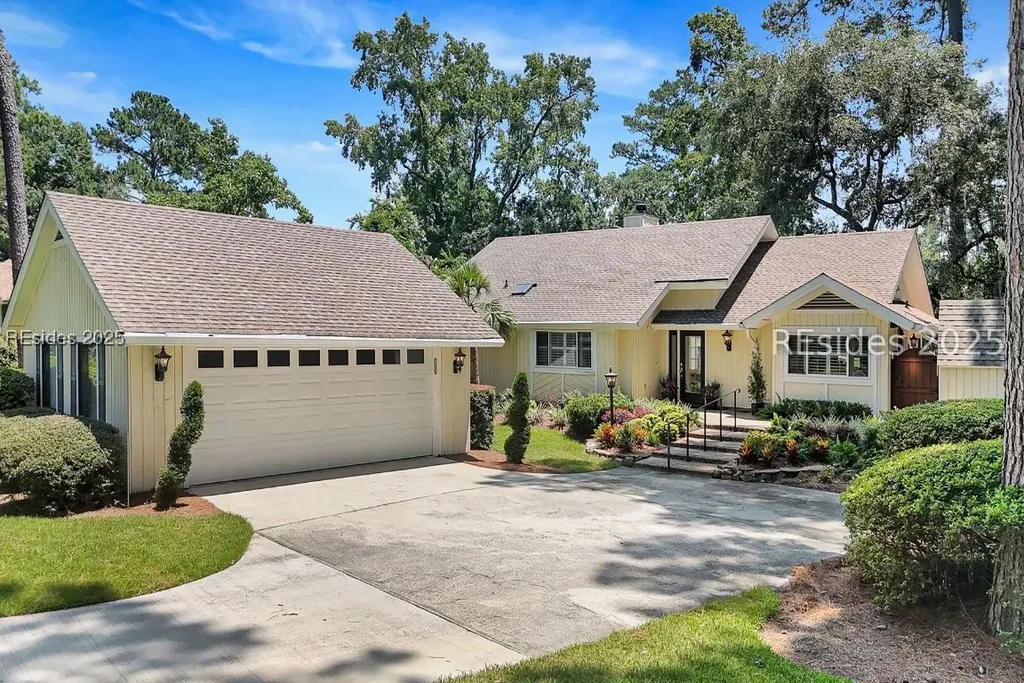 Value priced, superbly maintained, triple fairway, lagoon & marsh view residence in private, amenity rich Moss Creek. Features include wood flooring, smooth ceilings, custom detailed millwork & built-ins, granite counters, gas FP, plantation shutters, walls of windows to view, 2-tiered wrap around rear deck, max storage space incl. spray foamed attic storage, specimen trees, mature plantings, etc. Very livable floor plan offers great room, much desired Carolina room, formal/casual dining, wet bar w/frig & ice machine, kitchen with breakfast bar & walk-in pantry, 3 BRs including expansive primary suite w/ dual oversize walk-in closets w/built-ins, well-appointed bath, laundry room, office nook & 2 car garage. All on oversize lot offering maximum privacy and central locale close to all community amenities.